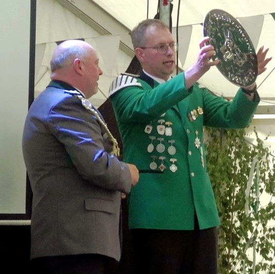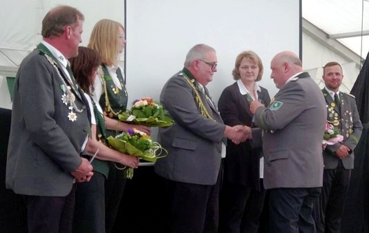 Der Samstag stand ganz im Zeichen des festlichen Ummarschs zum Annageln der Schützen-scheibe des Schützenkönigs Thomas Joachim. Die zweitplatzierte Elke Wallnau-Toepfer-Hartung und der drittplatzierte Frederic Hartung vervollständigten das Treppchen. Am Abend verwandelte sich das Festgelände in einen Ort der ausgelassenen Feier. Die Partyband „CORADOS music and more…“ sorgte für eine mitreißende Stimmung, die zum Tanz und zur fröhlichen Geselligkeit animierte.