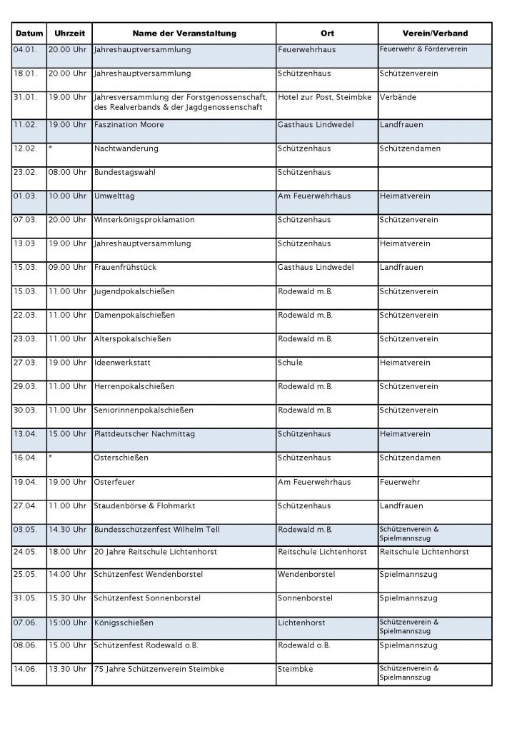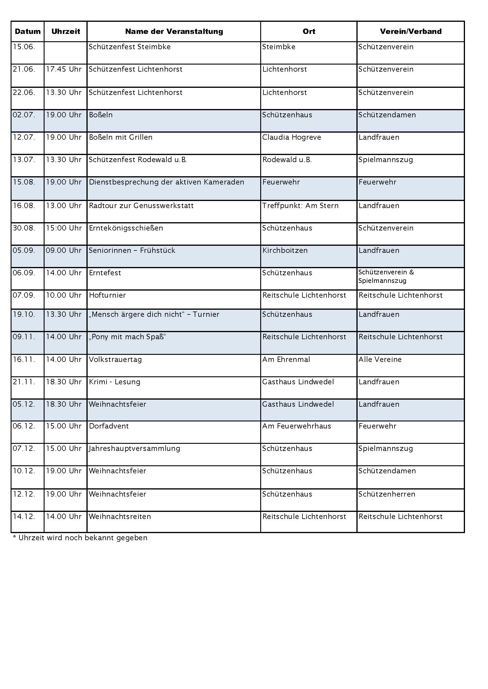 Terminkalender Lichtenhorst 2025