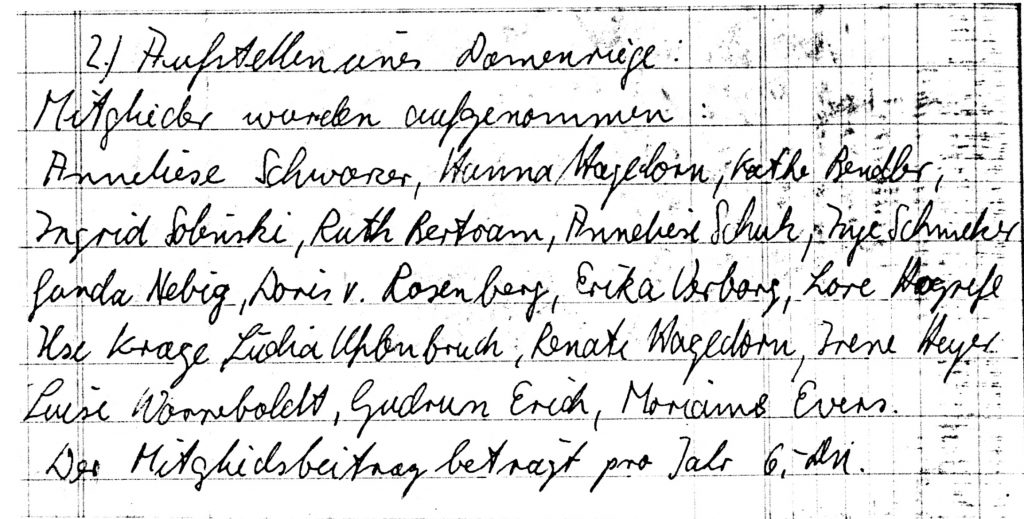 Erika Verbarg, Lore Hogreve, Ilse Krage, Lydia Uhlenbruch, Renate Hagedorn, Irene Heyer, Luise Warneboldt, Gudrun Erich,
