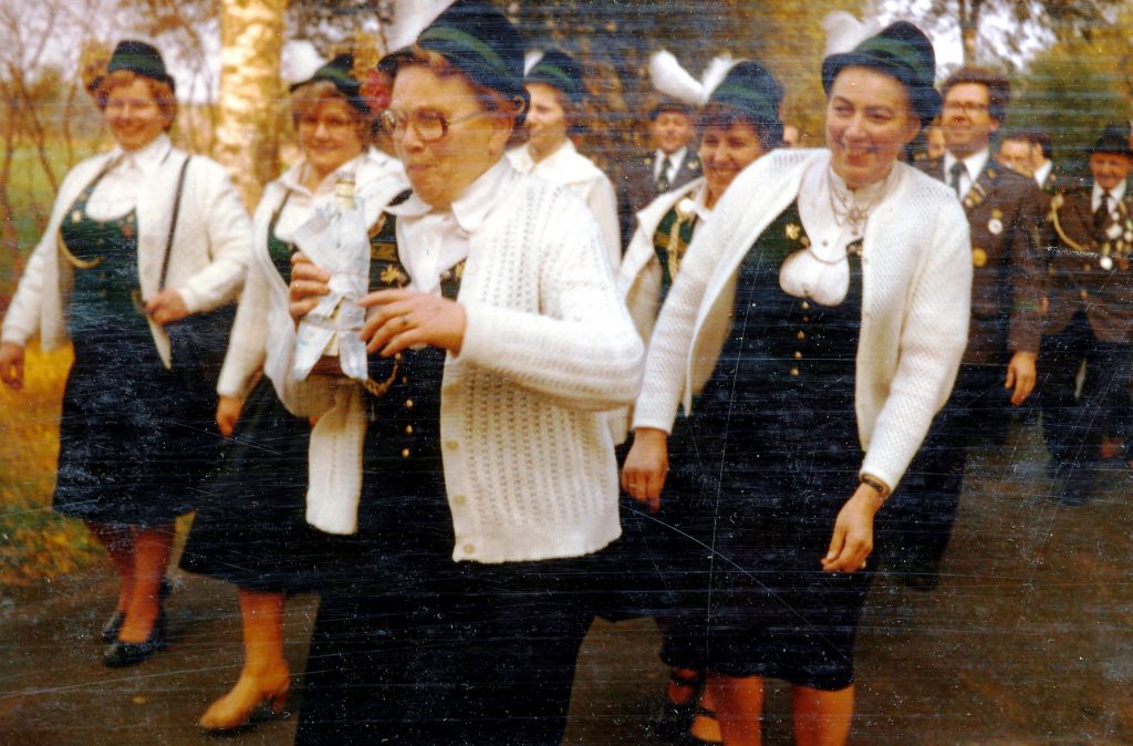 Mit viel Freude und Schwung begannen die Damen zu schießen. Schon nach kurzer Zeit gehörten sie einfach dazu. Ihre Schießleistungen sind beachtlich gut und ihre hübschen Uniformen beleben das Aussehen bei Ausmärschen und Festen beträchtlich. Ihre Anwesenheit in unserem Kreise macht jede Zusammenkunft gemütlicher als bisher. Ihre Beteiligung an Aufgaben und Pflichten ist groß und wird dankbar anerkannt. So ist die allgemeine Ansicht nur natürlich, daß wir unsere Damenriege nicht mehr. missen möchten.