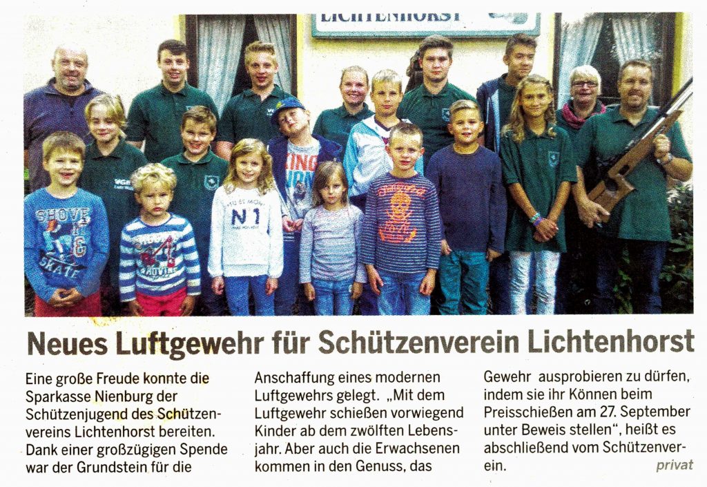 Das muss zurzeit auch der Schützenverein Lichtenhorst erfahren, denn in den letzten Jahren schrumpfte der Bestand an Jugendlichen beträchtlich. Dieser Trend setzte sich leider weiter fort und es gilt, den Prozess durch Beschreitung neuer Wege zu stoppen.