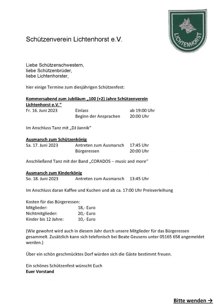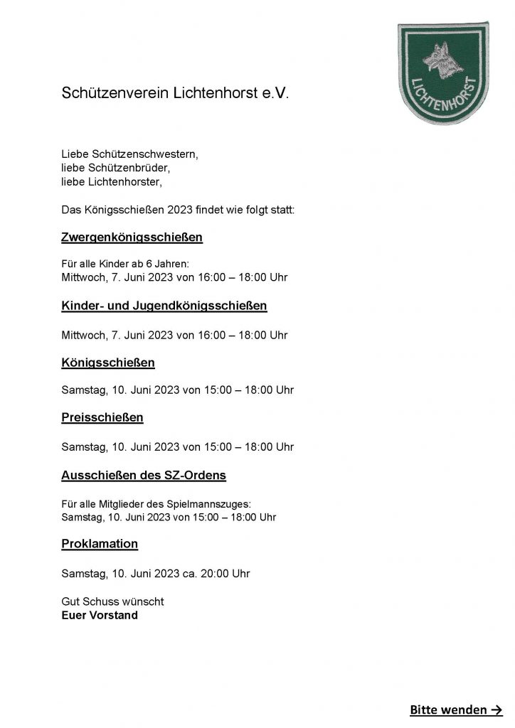 Sehr gut besucht war das diesjährige Königsschießen am 10. Juni 2023. Zum ersten Mal in der 102-jährigen Geschichte des Schützenvereins Lichtenhorst e.V. durften Schützinnen und Schützen gemeinsam um die Königswürde schießen. Auf der diesjährigen Jahreshauptversmmlung wurde nämlich mehrheitlich beschlossen, das…